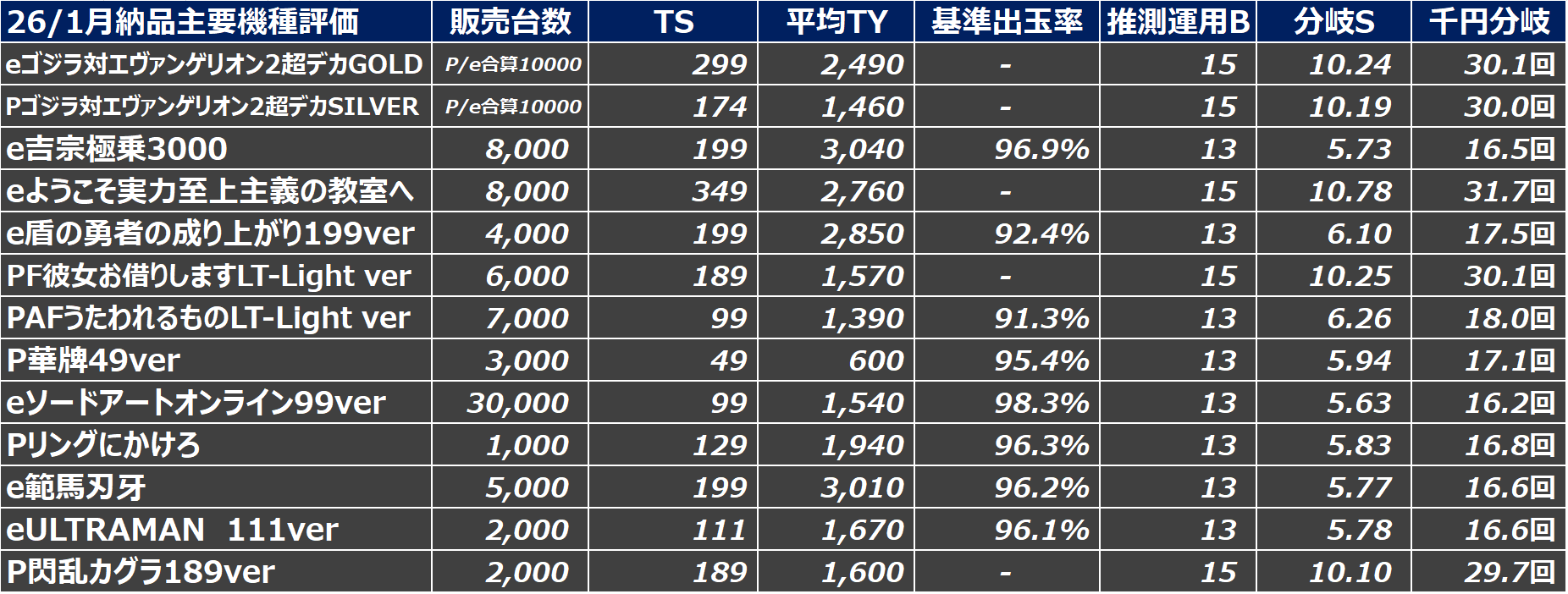 そんな中、新年一発目、毎月恒例の1月納品予定機種のシミュレーション結果をお届けします!